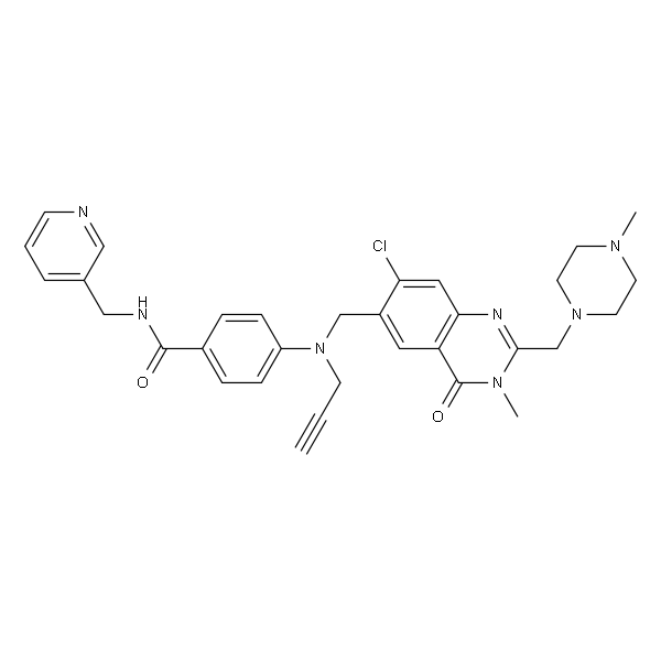 InChI=1S/C32H34ClN7O2/c1-4-12-40(26-9-7-24(8-10-26)31(41)35-20-23-6-5-11-34-19-23)21-25-17-27-29(18-28(25)33)36-30(38(3)32(27)42)22-39-15-13-37(2)14-16-39/h1,5-11,17-19H,12-16,20-22H2,2-3H3,(H,35,41)
