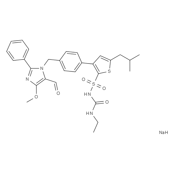 InChI=1S/C29H32N4O5S2.Na/c1-5-30-29(35)32-40(36,37)28-24(16-23(39-28)15-19(2)3)21-13-11-20(12-14-21)17-33-25(18-34)27(38-4)31-26(33)22-9-7-6-8-10-22;/h6-14,16,18-19H,5,15,17H2,1-4H3,(H2,30,32,35);/q;+1/p-1