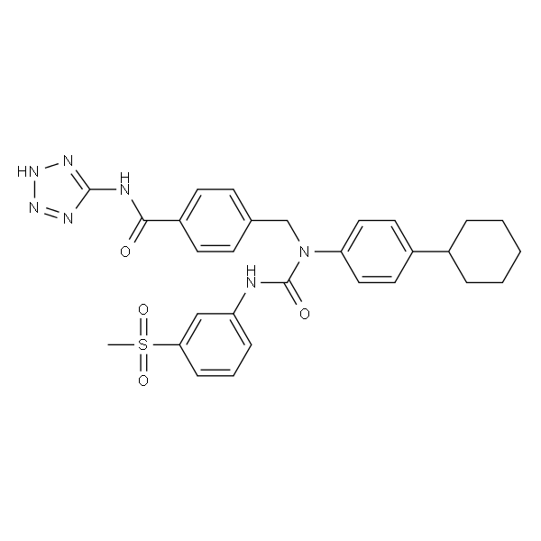InChI=1S/C29H31N7O4S/c1-41(39,40)26-9-5-8-24(18-26)30-29(38)36(25-16-14-22(15-17-25)21-6-3-2-4-7-21)19-20-10-12-23(13-11-20)27(37)31-28-32-34-35-33-28/h5,8-18,21H,2-4,6-7,19H2,1H3,(H,30,38)(H2,31,32,33,34,35,37)
