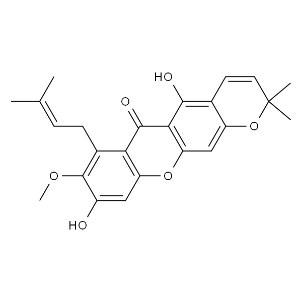 InChI=1S/C24H24O6/c1-12(2)6-7-14-19-17(10-15(25)23(14)28-5)29-18-11-16-13(8-9-24(3,4)30-16)21(26)20(18)22(19)27/h6,8-11,25-26H,7H2,1-5H3
