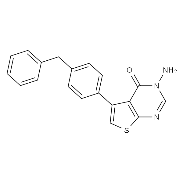InChI=1S/C19H15N3OS/c20-22-12-21-18-17(19(22)23)16(11-24-18)15-8-6-14(7-9-15)10-13-4-2-1-3-5-13/h1-9,11-12H,10,20H2