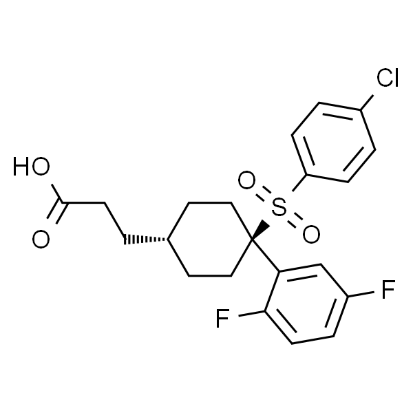 InChI=1S/C21H21ClF2O4S/c22-15-2-5-17(6-3-15)29(27,28)21(18-13-16(23)4-7-19(18)24)11-9-14(10-12-21)1-8-20(25)26/h2-7,13-14H,1,8-12H2,(H,25,26)