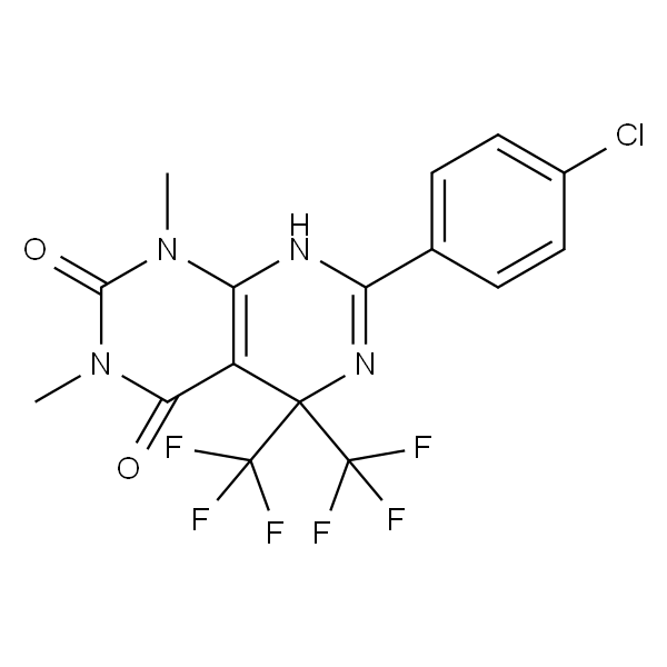 InChI=1S/C16H11ClF6N4O2/c1-26-11-9(12(28)27(2)13(26)29)14(15(18,19)20,16(21,22)23)25-10(24-11)7-3-5-8(17)6-4-7/h3-6H,1-2H3,(H,24,25)