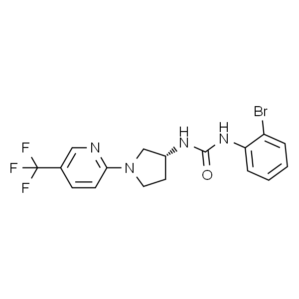 InChI=1S/C17H16BrF3N4O/c18-13-3-1-2-4-14(13)24-16(26)23-12-7-8-25(10-12)15-6-5-11(9-22-15)17(19,20)21/h1-6,9,12H,7-8,10H2,(H2,23,24,26)/t12-/m1/s1