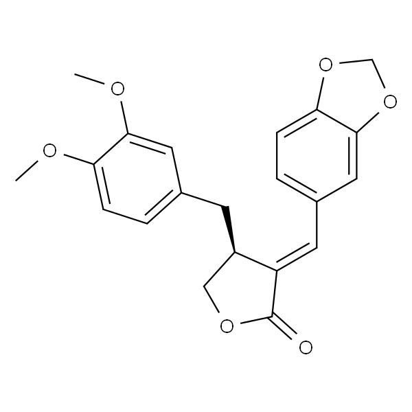 InChI=1S/C21H20O6/c1-23-17-5-3-13(9-19(17)24-2)7-15-11-25-21(22)16(15)8-14-4-6-18-20(10-14)27-12-26-18/h3-6,8-10,15H,7,11-12H2,1-2H3/b16-8+/t15-/m0/s1