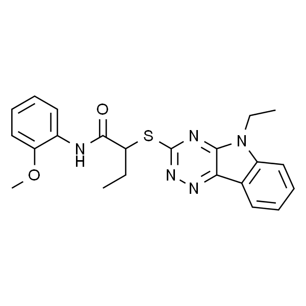 InChI=1S/C22H23N5O2S/c1-4-18(21(28)23-15-11-7-9-13-17(15)29-3)30-22-24-20-19(25-26-22)14-10-6-8-12-16(14)27(20)5-2/h6-13,18H,4-5H2,1-3H3,(H,23,28)