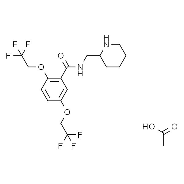 InChI=1S/C17H20F6N2O3.C2H4O2/c18-16(19,20)9-27-12-4-5-14(28-10-17(21,22)23)13(7-12)15(26)25-8-11-3-1-2-6-24-11;1-2(3)4/h4-5,7,11,24H,1-3,6,8-10H2,(H,25,26);1H3,(H,3,4)
