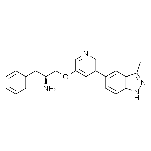InChI=1S/C22H22N4O/c1-15-21-11-17(7-8-22(21)26-25-15)18-10-20(13-24-12-18)27-14-19(23)9-16-5-3-2-4-6-16/h2-8,10-13,19H,9,14,23H2,1H3,(H,25,26)/t19-/m0/s1