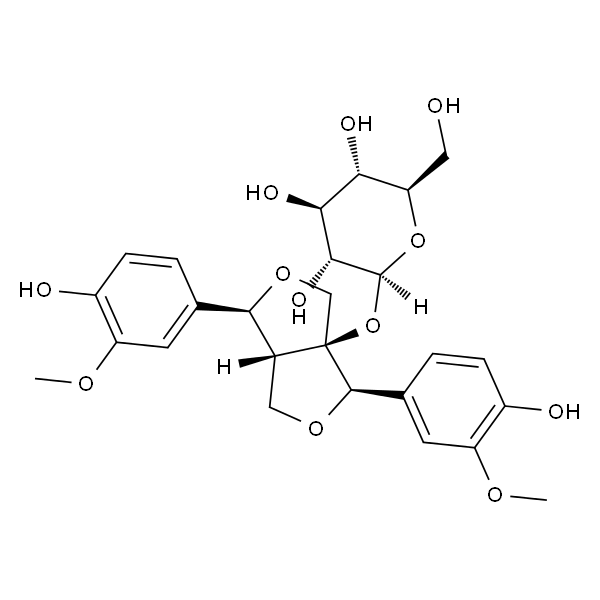 InChI=1S/C26H32O12/c1-33-17-7-12(3-5-15(17)28)23-14-10-35-24(13-4-6-16(29)18(8-13)34-2)26(14,11-36-23)38-25-22(32)21(31)20(30)19(9-27)37-25/h3-8,14,19-25,27-32H,9-11H2,1-2H3