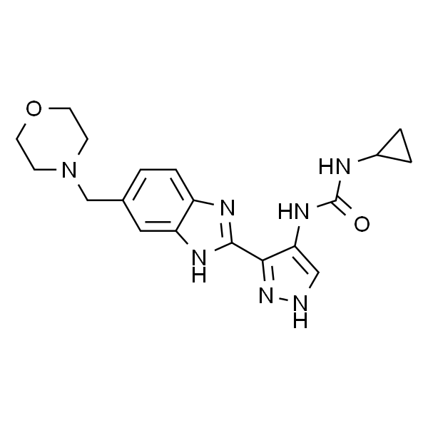 InChI=1S/C19H23N7O2/c27-19(21-13-2-3-13)24-16-10-20-25-17(16)18-22-14-4-1-12(9-15(14)23-18)11-26-5-7-28-8-6-26/h1,4,9-10,13H,2-3,5-8,11H2,(H,20,25)(H,22,23)(H2,21,24,27)