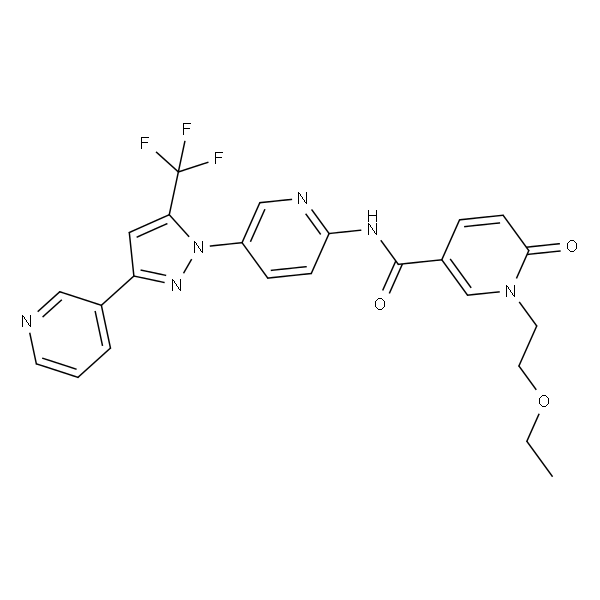 InChI=1S/C24H21F3N6O3/c1-2-36-11-10-32-15-17(5-8-22(32)34)23(35)30-21-7-6-18(14-29-21)33-20(24(25,26)27)12-19(31-33)16-4-3-9-28-13-16/h3-9,12-15H,2,10-11H2,1H3,(H,29,30,35)