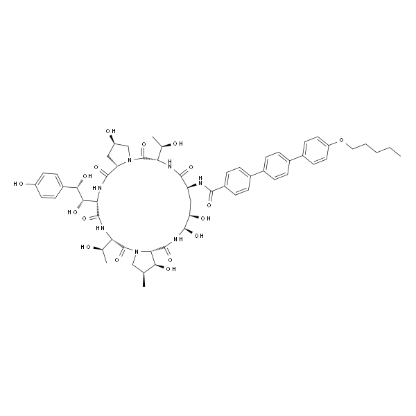 阿尼芬净用途Anidulafungin 是一种新型的半合成棘球白素,具有抗真菌 (antifungal) 效力。